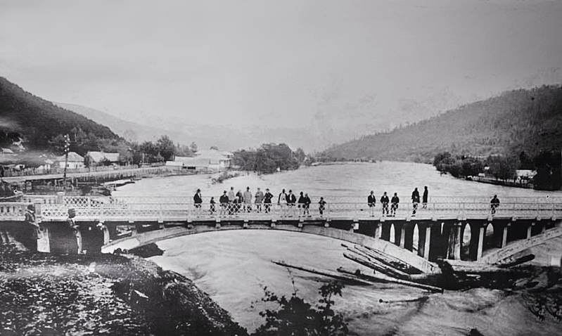 Podul HanguluiPodul HanguluiAvea o cale ferată cu ecartament îngust, folosită la exploatări locale și temporare forestiere, decovile, posibil aceeași aparținând unei făbricuțe evreiești din Hangu închise înainte de Primul Război Mondial…Exploatare forestiera HanguȘi hanganii se adunau duminica în centrul comunei, numit de ei Gura Hangului. Foto 1 – înainte de 1944, Foto 2 – înainte de 1940, îmbrăcaţi naţional, cămaşă albă, iţari, bundiţă de şiac